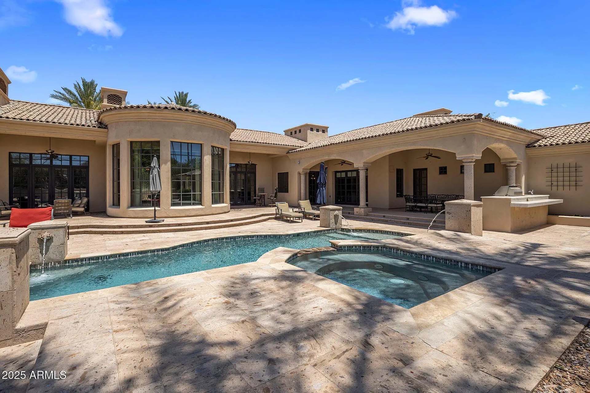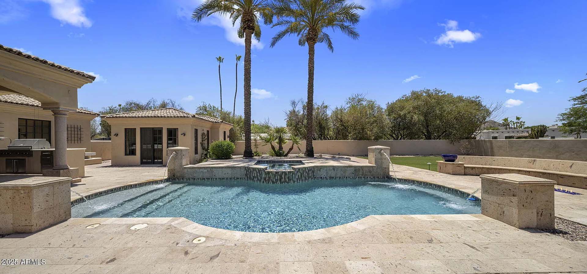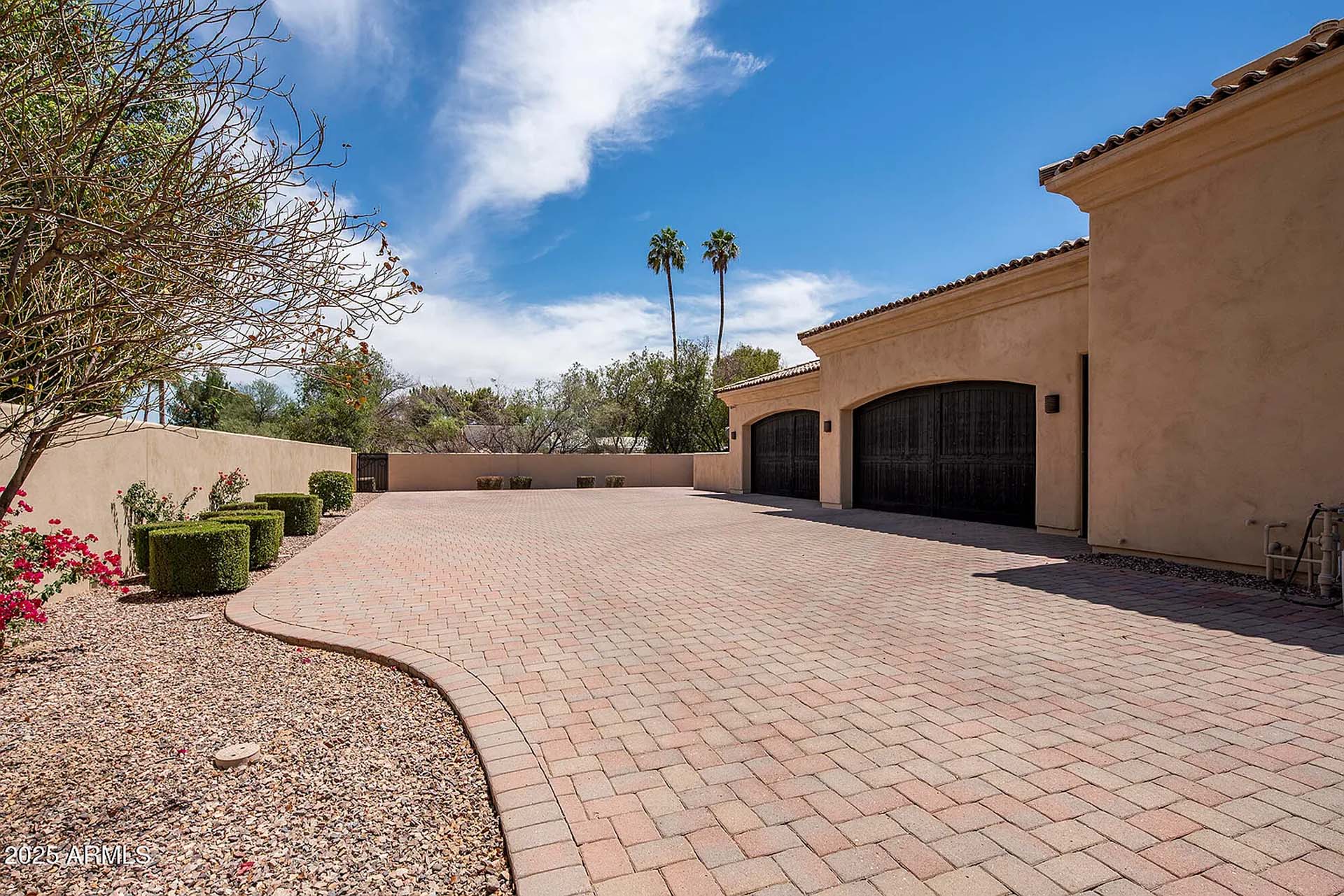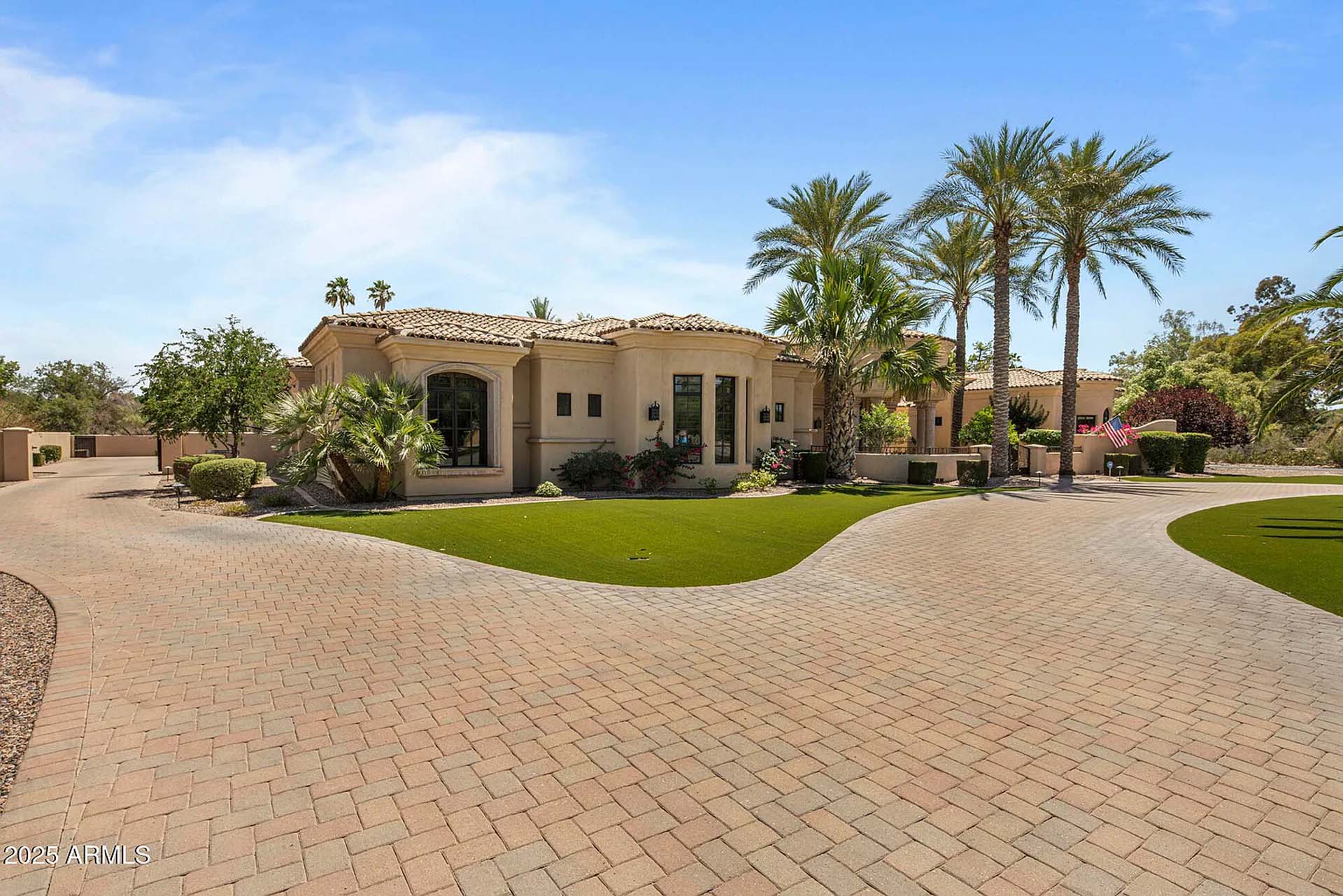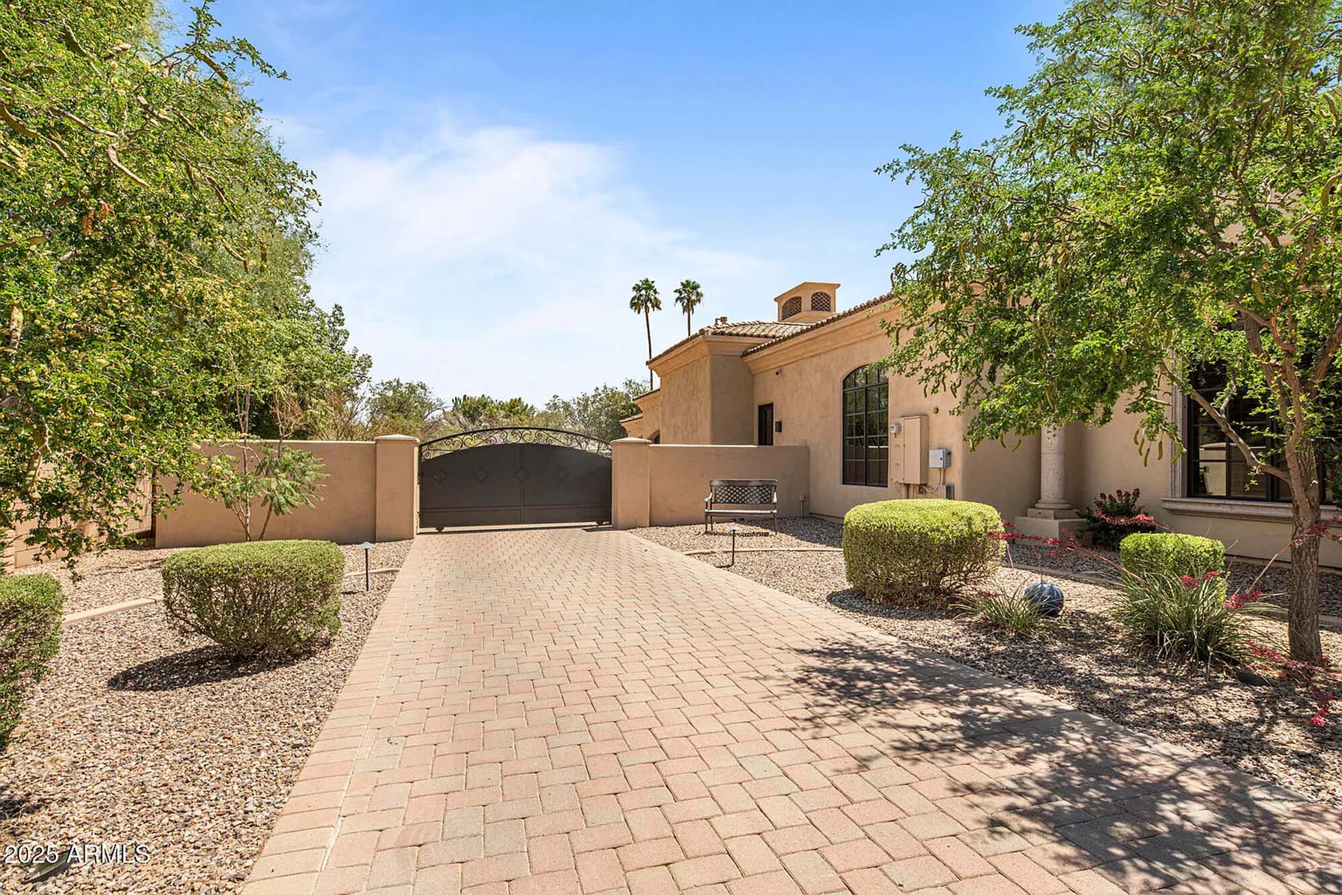 Luxury in abound in this stunning Paradise Valley Estate. This beautiful home has a split floor plan with Master Suite and Large Office off the west wing and 3 en-suites and bonus/game room off the east wing and a detached guest casita by the pool. As you enter into the grand foyer you experience the vastness of the formal living room, dining room and wet bar w/ a 1000 bottle chilled wine cellar. The chef's kitchen is adorned with 4 Viking ovens(2 are wall ovens), Viking range, dual refrigerator/freezers, dual dish washers, 2 islands, vented hood, built in Miele expresso maker, farm sink, drawer microwave, butler and walk-in pantries. The large Master Retreat boast a sitting room, a door leading out to rear yard pool/spa, gas fireplace, 2 walk-in closets with one plumbed for washer/dryer The Master Bath is your personal spa with 2 vanities, 2 water closets, steam shower with rain head, and amazing 2 person jetted tub over looking an atrium. The home is equipped with a Crestron system that works the lights, pool equipment, exterior shades, commercial grade misters ect... The family room is open to kitchen with a automated large exterior pocket door that opens to the covered patio and out door kitchen. The resort style back yard has a custom pool and spa with travertine pavers and many water features. The 1 room guest casita has a full bath with separate entrance to be used as a pool bath. Behind that is an outdoor shower. There is a built-in curved seating area around the gas fire pit. There is a gated entry into the motor court area that is large enough to store an RV. The side entry air conditioned 4 car garage has high ceiling that could accommodate car lifts. There are 2 Electrical Vehicle charging points in the garage as well. In the past 6 years turf has been installed in the front and rear yards and all of the HVAC units including the wine cellar have been replaced. They have also installed 2 tankless water heaters in the main house. The home has enterprise-grade wireless network. This super unique estate is a must see!!