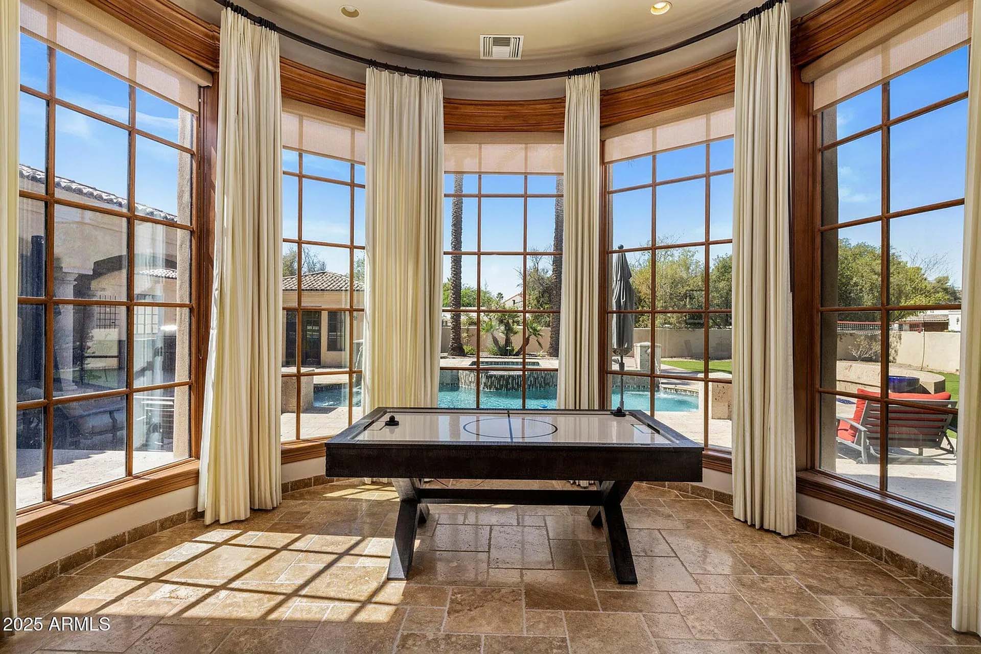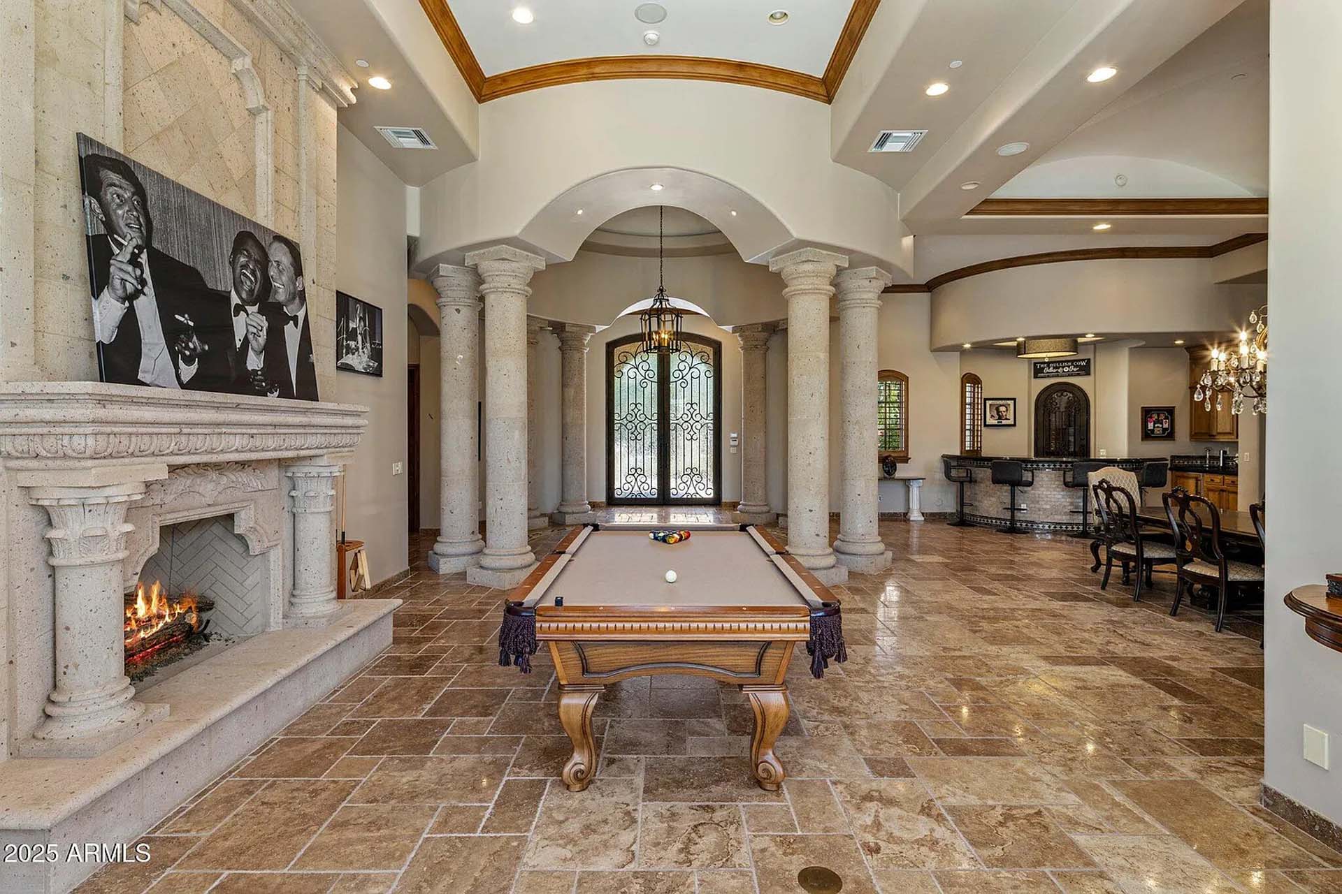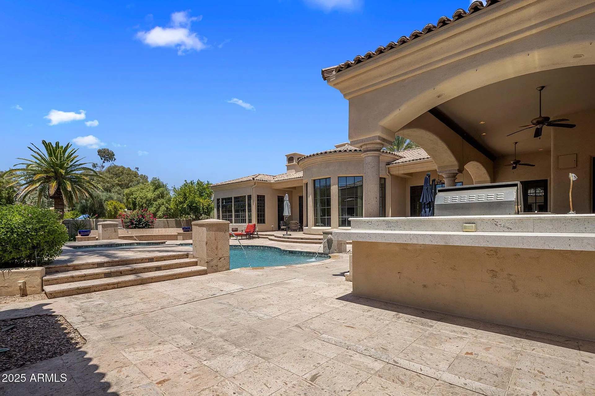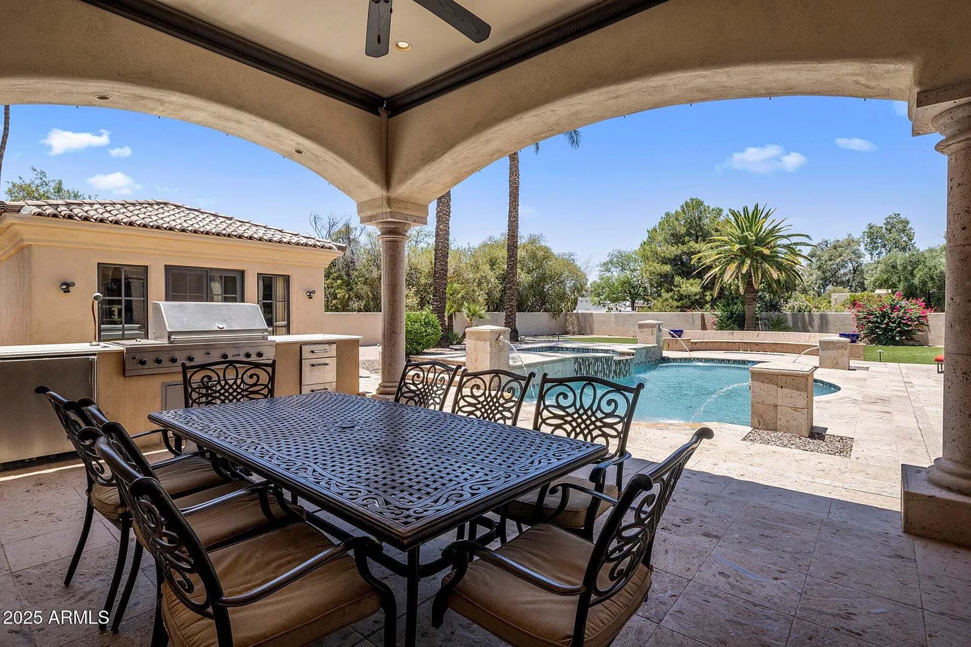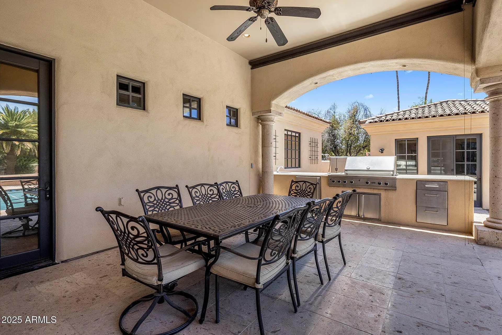 Luxury in abound in this stunning Paradise Valley Estate. This beautiful home has a split floor plan with Master Suite and Large Office off the west wing and 3 en-suites and bonus/game room off the east wing and a detached guest casita by the pool. As you enter into the grand foyer you experience the vastness of the formal living room, dining room and wet bar w/ a 1000 bottle chilled wine cellar. The chef's kitchen is adorned with 4 Viking ovens(2 are wall ovens), Viking range, dual refrigerator/freezers, dual dish washers, 2 islands, vented hood, built in Miele expresso maker, farm sink, drawer microwave, butler and walk-in pantries. The large Master Retreat boast a sitting room, a door leading out to rear yard pool/spa, gas fireplace, 2 walk-in closets with one plumbed for washer/dryer The Master Bath is your personal spa with 2 vanities, 2 water closets, steam shower with rain head, and amazing 2 person jetted tub over looking an atrium. The home is equipped with a Crestron system that works the lights, pool equipment, exterior shades, commercial grade misters ect... The family room is open to kitchen with a automated large exterior pocket door that opens to the covered patio and out door kitchen. The resort style back yard has a custom pool and spa with travertine pavers and many water features. The 1 room guest casita has a full bath with separate entrance to be used as a pool bath. Behind that is an outdoor shower. There is a built-in curved seating area around the gas fire pit. There is a gated entry into the motor court area that is large enough to store an RV. The side entry air conditioned 4 car garage has high ceiling that could accommodate car lifts. There are 2 Electrical Vehicle charging points in the garage as well. In the past 6 years turf has been installed in the front and rear yards and all of the HVAC units including the wine cellar have been replaced. They have also installed 2 tankless water heaters in the main house. The home has enterprise-grade wireless network. This super unique estate is a must see!!