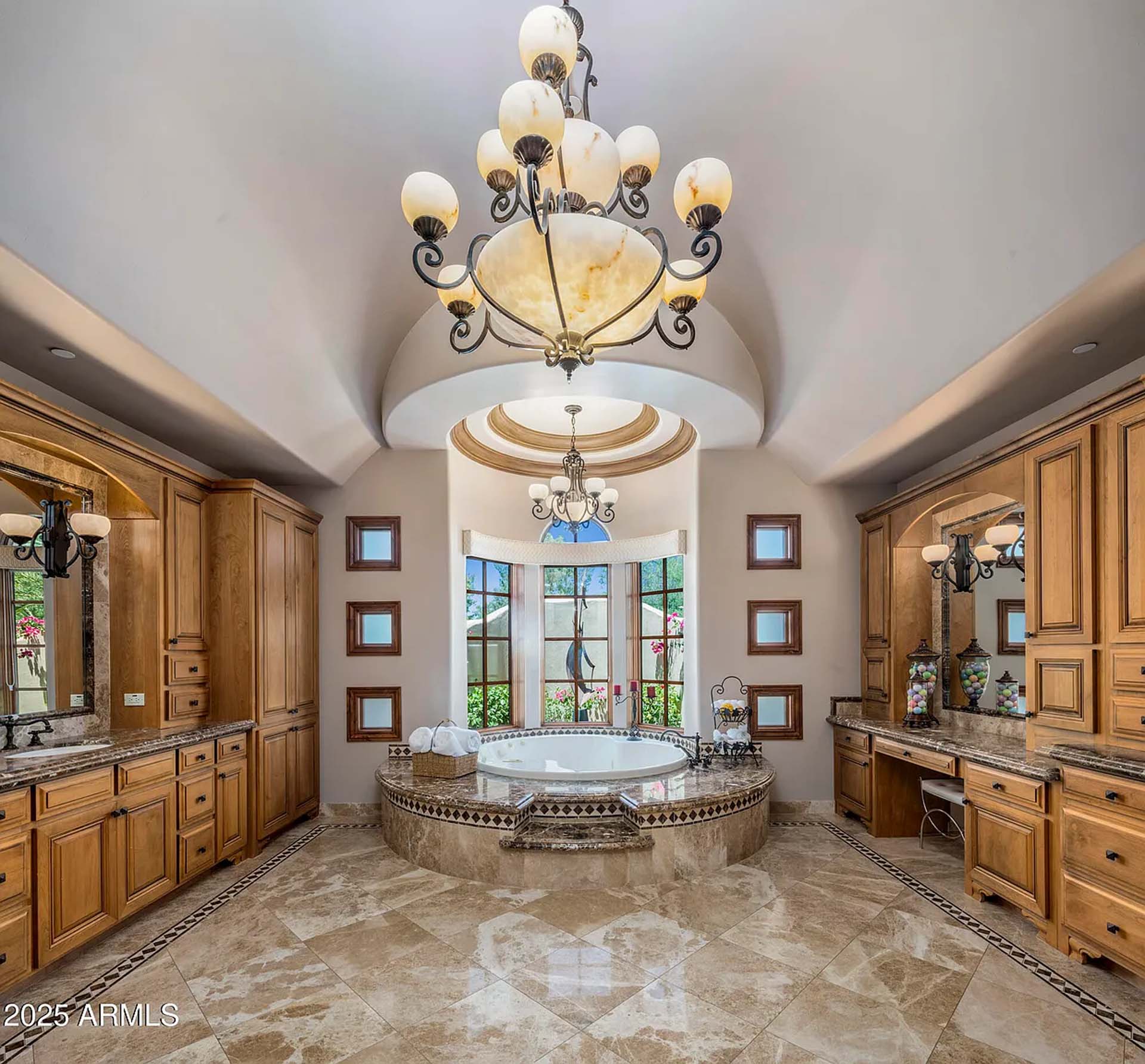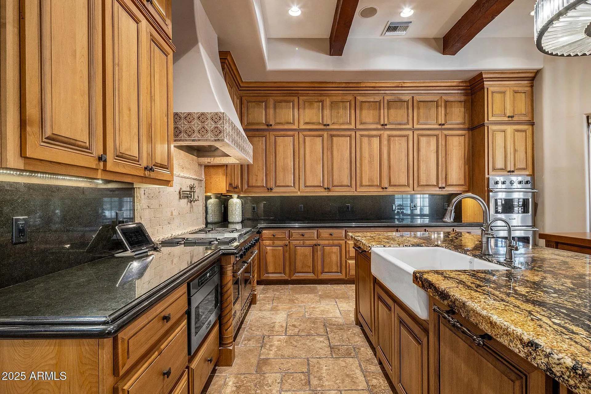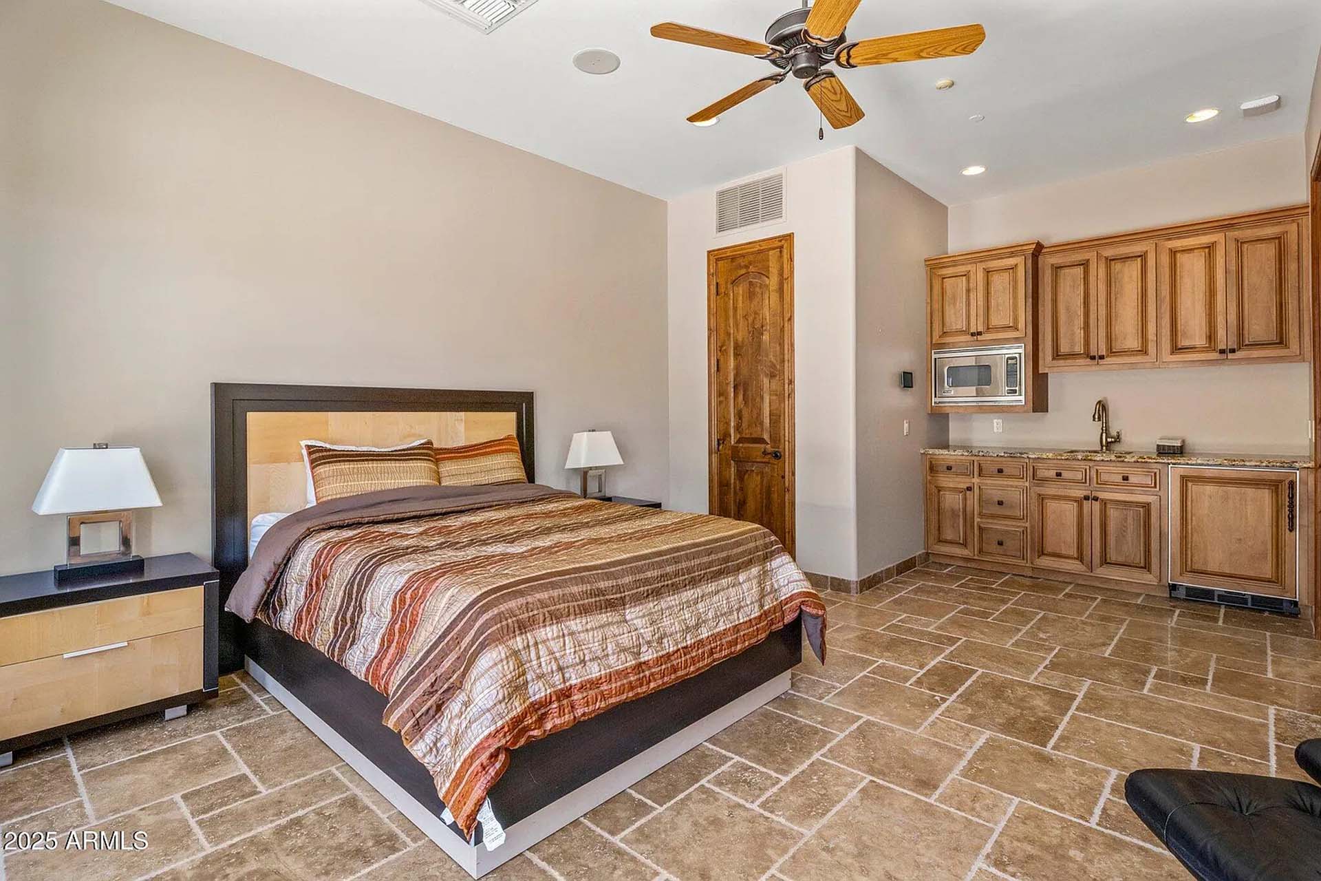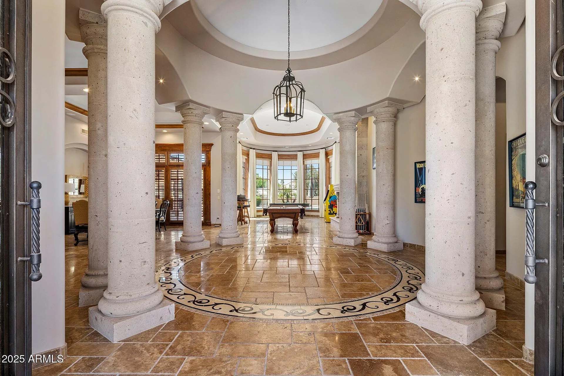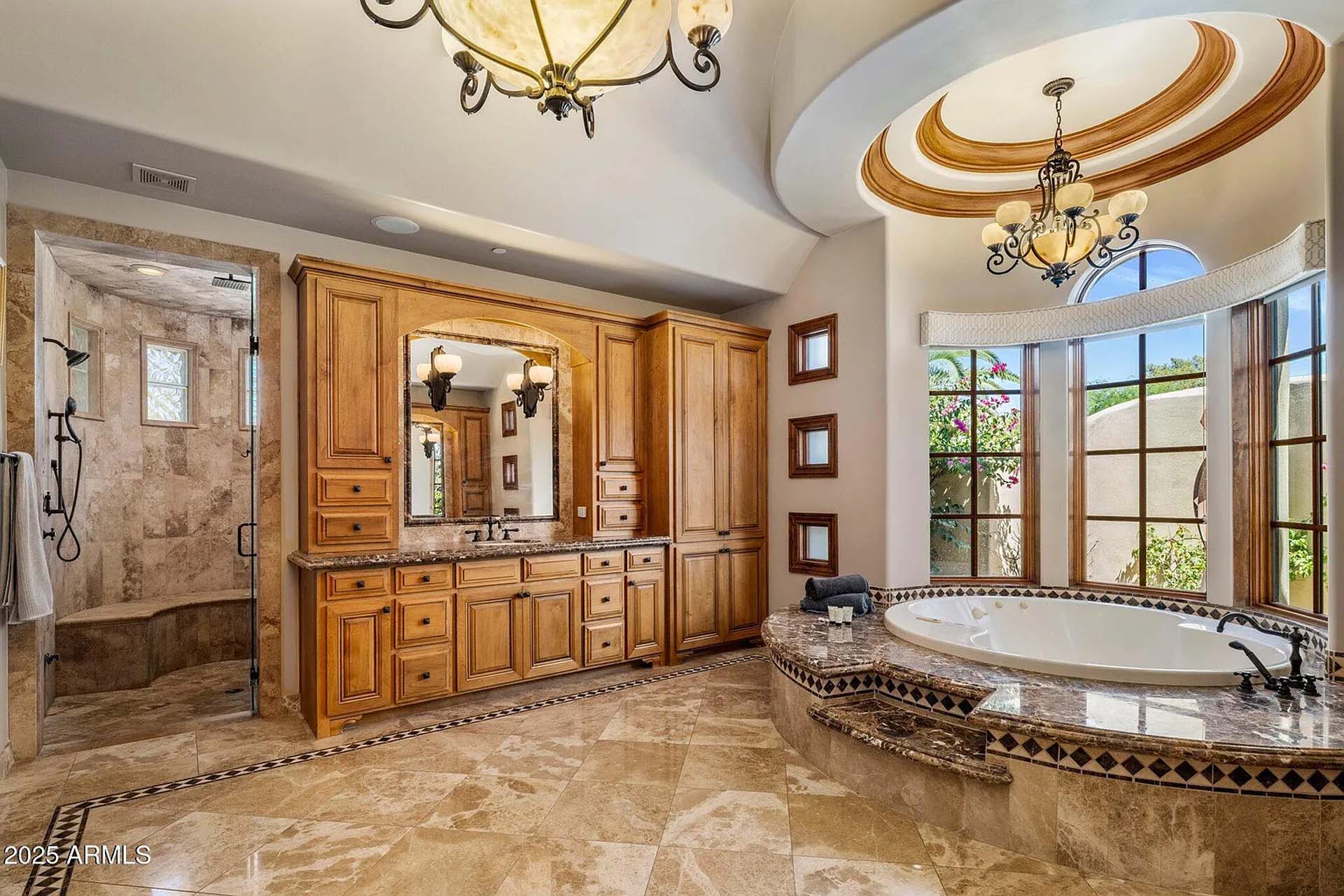 Luxury in abound in this stunning Paradise Valley Estate. This beautiful home has a split floor plan with Master Suite and Large Office off the west wing and 3 en-suites and bonus/game room off the east wing and a detached guest casita by the pool. As you enter into the grand foyer you experience the vastness of the formal living room, dining room and wet bar w/ a 1000 bottle chilled wine cellar. The chef's kitchen is adorned with 4 Viking ovens(2 are wall ovens), Viking range, dual refrigerator/freezers, dual dish washers, 2 islands, vented hood, built in Miele expresso maker, farm sink, drawer microwave, butler and walk-in pantries. The large Master Retreat boast a sitting room, a door leading out to rear yard pool/spa, gas fireplace, 2 walk-in closets with one plumbed for washer/dryer The Master Bath is your personal spa with 2 vanities, 2 water closets, steam shower with rain head, and amazing 2 person jetted tub over looking an atrium. The home is equipped with a Crestron system that works the lights, pool equipment, exterior shades, commercial grade misters ect... The family room is open to kitchen with a automated large exterior pocket door that opens to the covered patio and out door kitchen. The resort style back yard has a custom pool and spa with travertine pavers and many water features. The 1 room guest casita has a full bath with separate entrance to be used as a pool bath. Behind that is an outdoor shower. There is a built-in curved seating area around the gas fire pit. There is a gated entry into the motor court area that is large enough to store an RV. The side entry air conditioned 4 car garage has high ceiling that could accommodate car lifts. There are 2 Electrical Vehicle charging points in the garage as well. In the past 6 years turf has been installed in the front and rear yards and all of the HVAC units including the wine cellar have been replaced. They have also installed 2 tankless water heaters in the main house. The home has enterprise-grade wireless network. This super unique estate is a must see!!