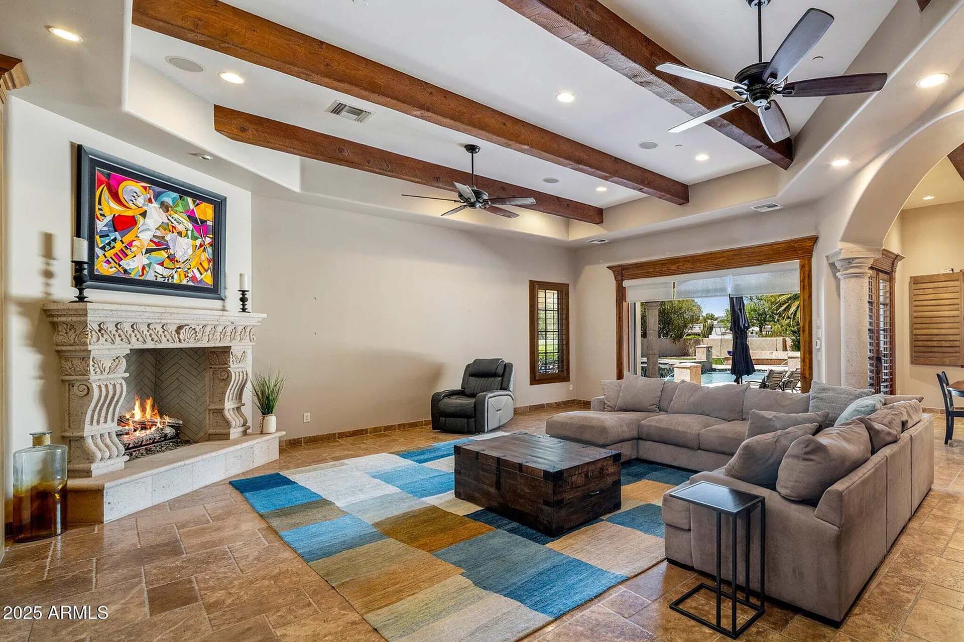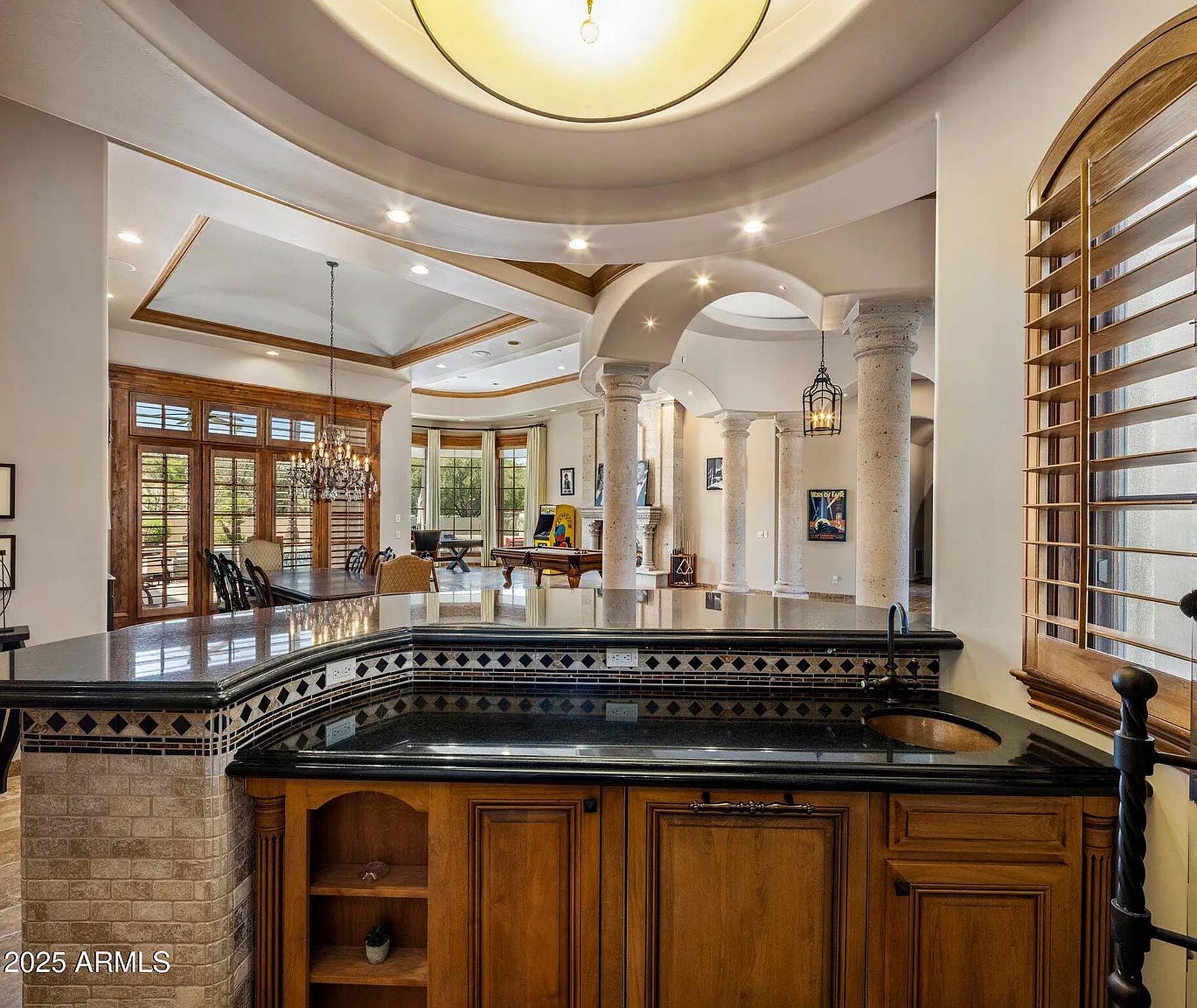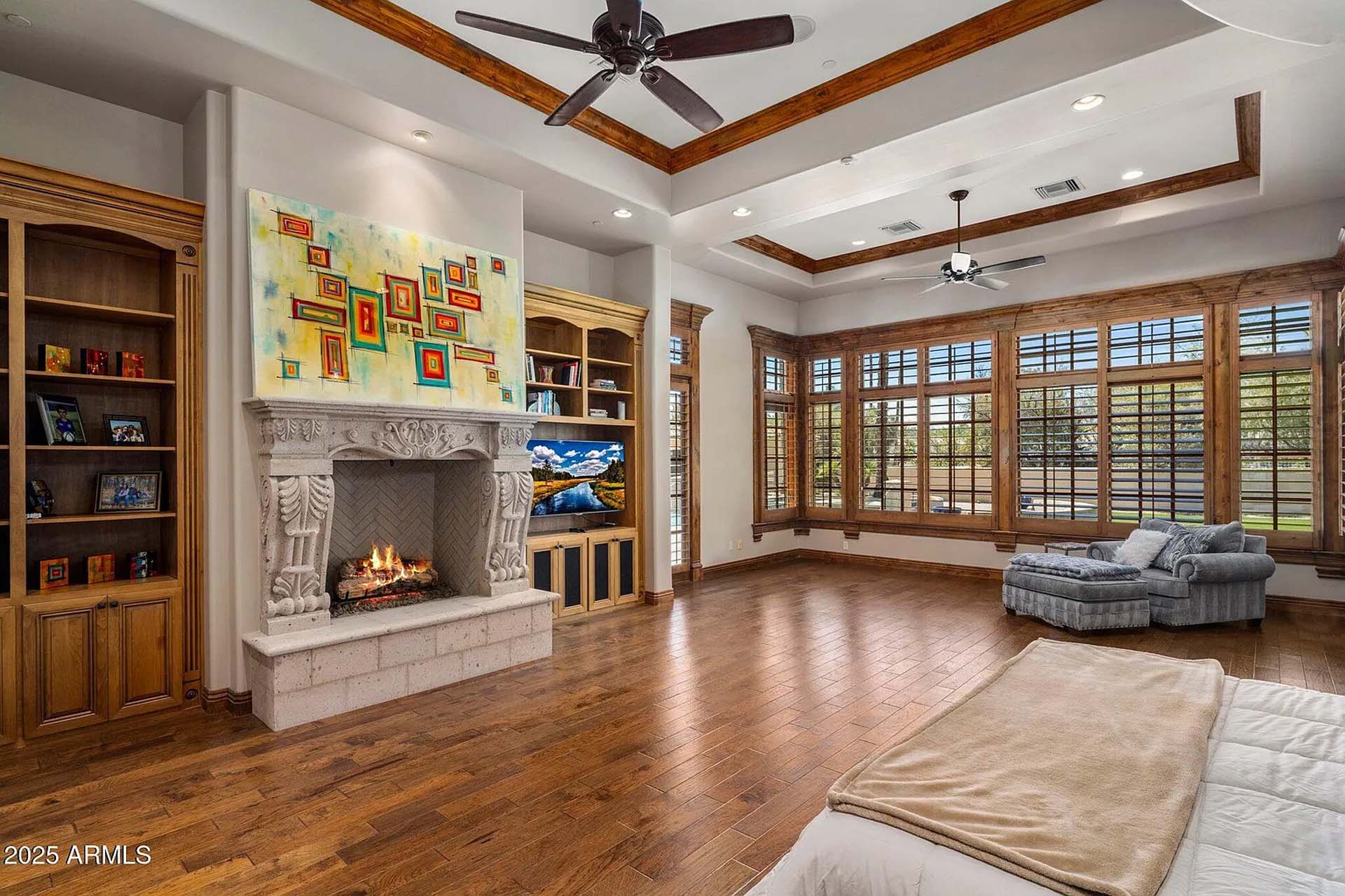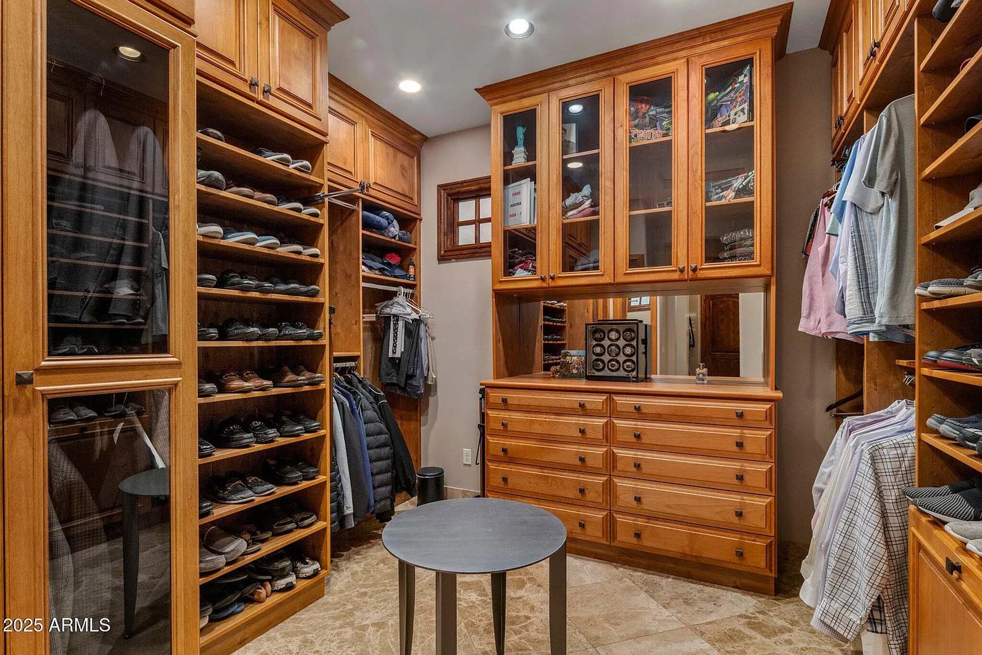 Luxury in abound in this stunning Paradise Valley Estate. This beautiful home has a split floor plan with Master Suite and Large Office off the west wing and 3 en-suites and bonus/game room off the east wing and a detached guest casita by the pool. As you enter into the grand foyer you experience the vastness of the formal living room, dining room and wet bar w/ a 1000 bottle chilled wine cellar. The chef's kitchen is adorned with 4 Viking ovens(2 are wall ovens), Viking range, dual refrigerator/freezers, dual dish washers, 2 islands, vented hood, built in Miele expresso maker, farm sink, drawer microwave, butler and walk-in pantries. The large Master Retreat boast a sitting room, a door leading out to rear yard pool/spa, gas fireplace, 2 walk-in closets with one plumbed for washer/dryer The Master Bath is your personal spa with 2 vanities, 2 water closets, steam shower with rain head, and amazing 2 person jetted tub over looking an atrium. The home is equipped with a Crestron system that works the lights, pool equipment, exterior shades, commercial grade misters ect... The family room is open to kitchen with a automated large exterior pocket door that opens to the covered patio and out door kitchen. The resort style back yard has a custom pool and spa with travertine pavers and many water features. The 1 room guest casita has a full bath with separate entrance to be used as a pool bath. Behind that is an outdoor shower. There is a built-in curved seating area around the gas fire pit. There is a gated entry into the motor court area that is large enough to store an RV. The side entry air conditioned 4 car garage has high ceiling that could accommodate car lifts. There are 2 Electrical Vehicle charging points in the garage as well. In the past 6 years turf has been installed in the front and rear yards and all of the HVAC units including the wine cellar have been replaced. They have also installed 2 tankless water heaters in the main house. The home has enterprise-grade wireless network. This super unique estate is a must see!!