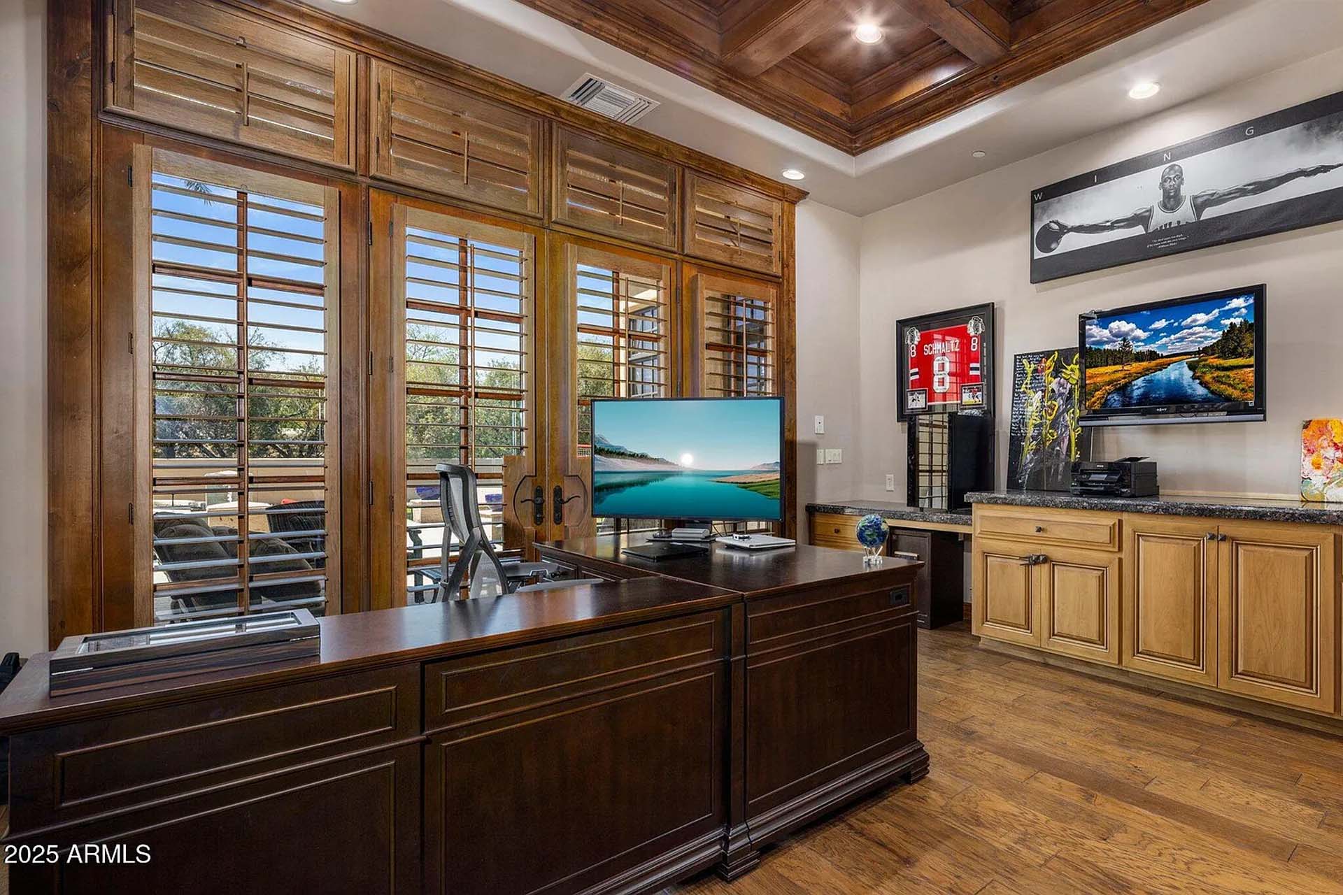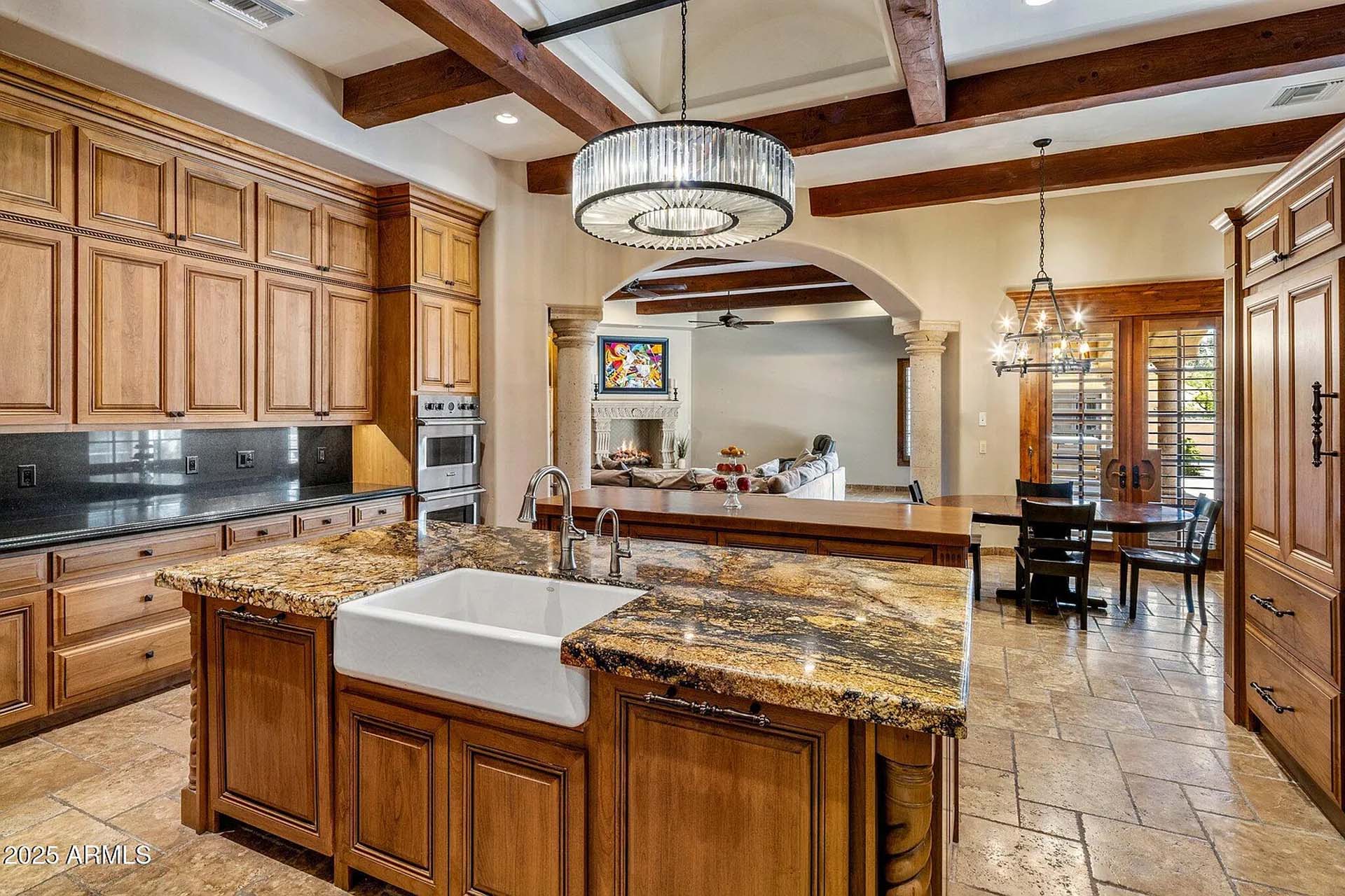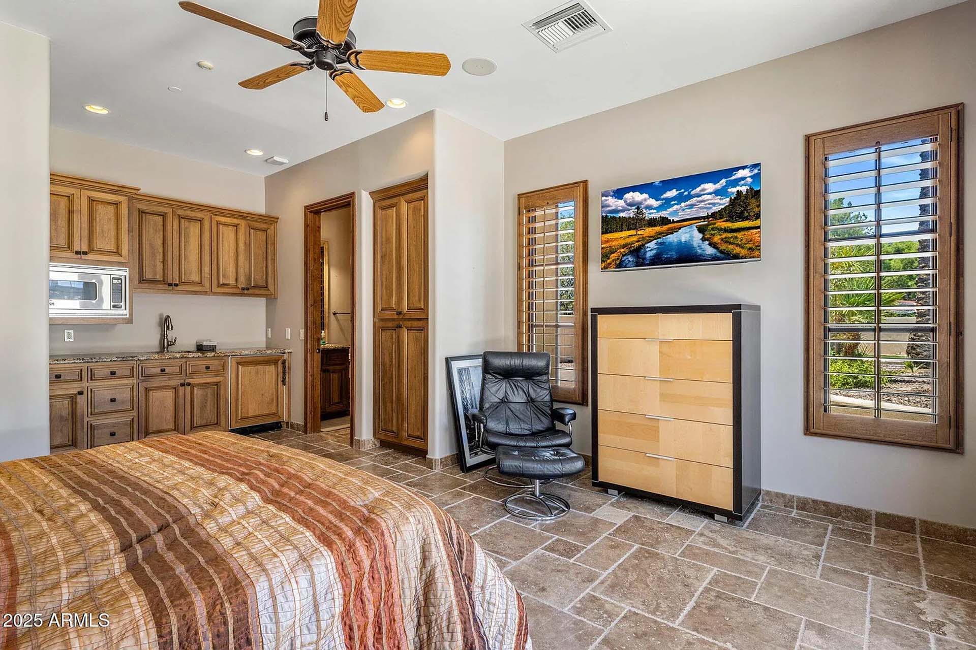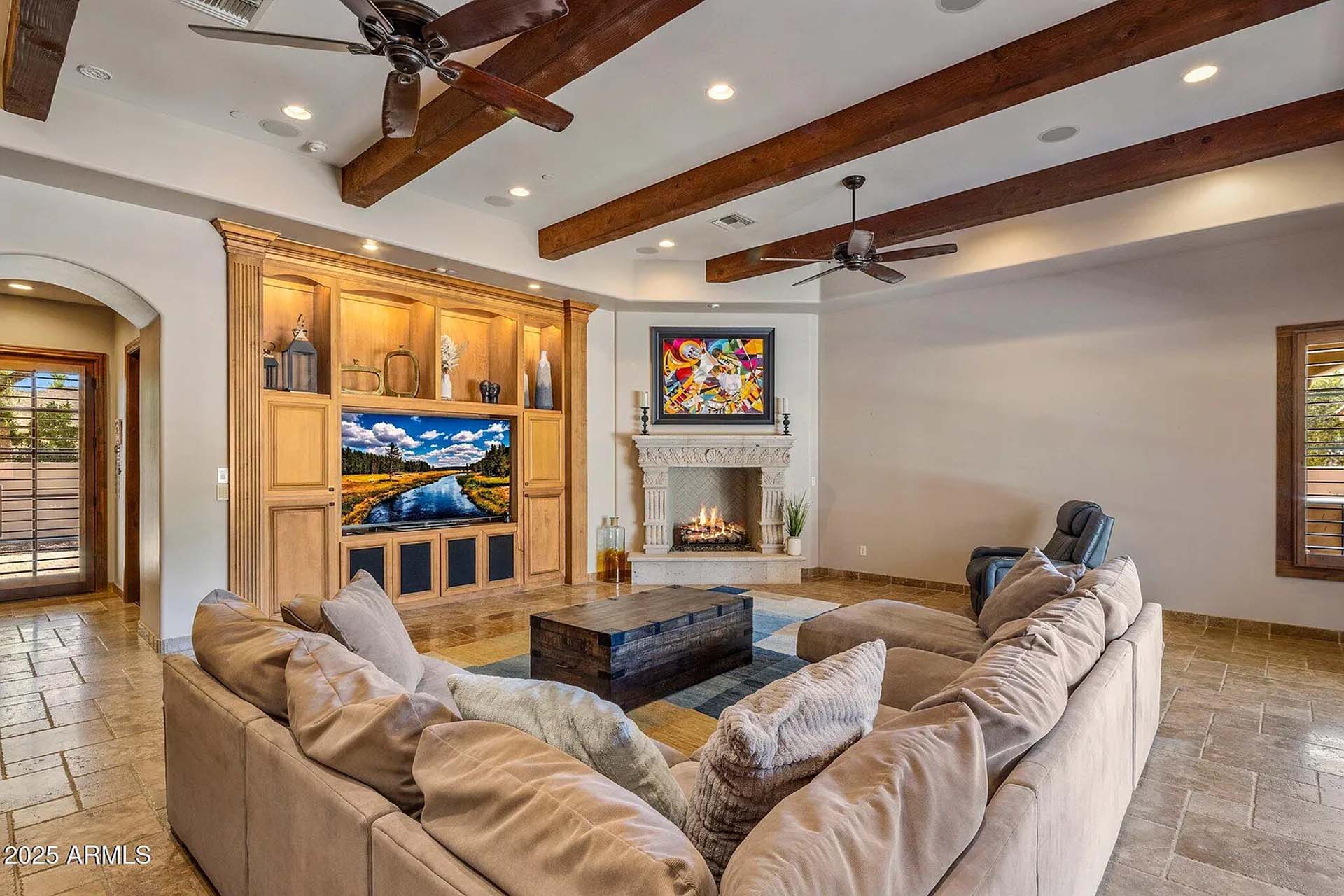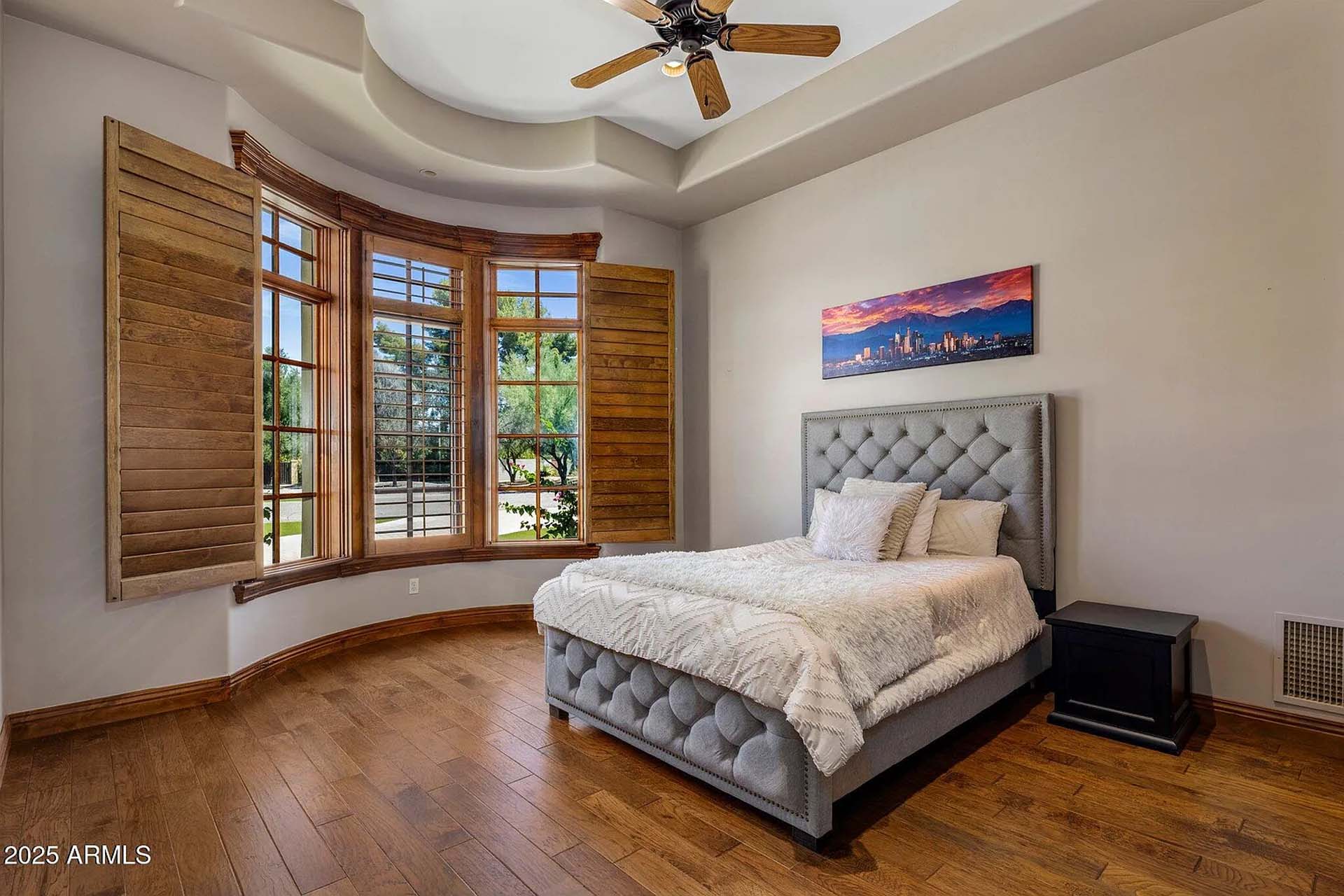 Luxury in abound in this stunning Paradise Valley Estate. This beautiful home has a split floor plan with Master Suite and Large Office off the west wing and 3 en-suites and bonus/game room off the east wing and a detached guest casita by the pool. As you enter into the grand foyer you experience the vastness of the formal living room, dining room and wet bar w/ a 1000 bottle chilled wine cellar. The chef's kitchen is adorned with 4 Viking ovens(2 are wall ovens), Viking range, dual refrigerator/freezers, dual dish washers, 2 islands, vented hood, built in Miele expresso maker, farm sink, drawer microwave, butler and walk-in pantries. The large Master Retreat boast a sitting room, a door leading out to rear yard pool/spa, gas fireplace, 2 walk-in closets with one plumbed for washer/dryer The Master Bath is your personal spa with 2 vanities, 2 water closets, steam shower with rain head, and amazing 2 person jetted tub over looking an atrium. The home is equipped with a Crestron system that works the lights, pool equipment, exterior shades, commercial grade misters ect... The family room is open to kitchen with a automated large exterior pocket door that opens to the covered patio and out door kitchen. The resort style back yard has a custom pool and spa with travertine pavers and many water features. The 1 room guest casita has a full bath with separate entrance to be used as a pool bath. Behind that is an outdoor shower. There is a built-in curved seating area around the gas fire pit. There is a gated entry into the motor court area that is large enough to store an RV. The side entry air conditioned 4 car garage has high ceiling that could accommodate car lifts. There are 2 Electrical Vehicle charging points in the garage as well. In the past 6 years turf has been installed in the front and rear yards and all of the HVAC units including the wine cellar have been replaced. They have also installed 2 tankless water heaters in the main house. The home has enterprise-grade wireless network. This super unique estate is a must see!!
